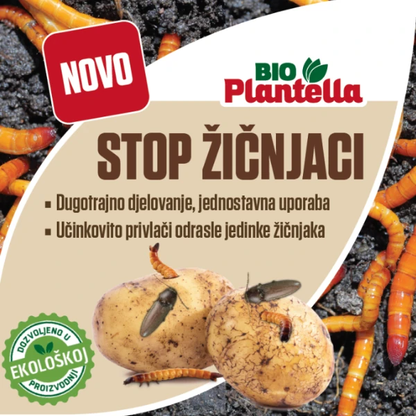 Bio Plantella Stop žičnjaci je feromonski mamac namijenjen korištenju u klopkama za praćenje žičnjaka. Koristi se za privlačenje odraslih jedinki i procjenu njihove aktivnosti u tlu. Ne djeluje kao insekticid, već kao mehaničko sredstvo za smanjenje populacije. Proizvod je namijenjen primjeni tijekom vegetacije u različitim uzgojnim uvjetima.