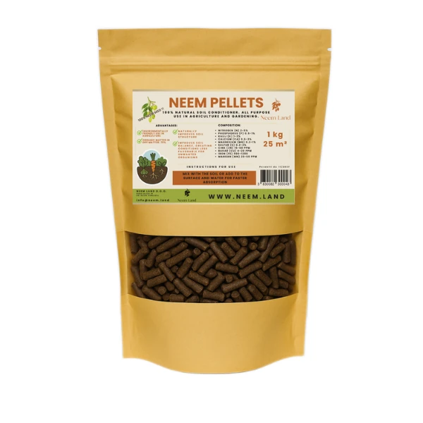 Neem peleti su organsko gnojivo biljnog podrijetla dobiveno preradom sjemena neem drveta (Azadirachta indica). Neem peleti u tlu postupno otpuštaju hranjiva i prirodne bioaktivne spojeve koji poboljšavaju plodnost tla, potiču mikrobiološku aktivnost i osiguravaju ravnomjernu opskrbu biljaka tijekom vegetacije.