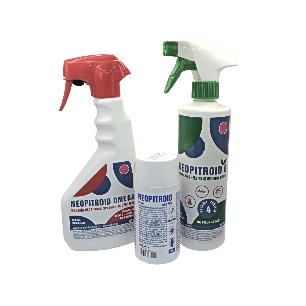Neopitroid paket koristi se protiv žohara, mrava, stjenica, smrdljivih martina i drugih kućnih štetnika. Kombinacijom tri proizvoda omogućuje učinkovito djelovanje na leteće i puzajuće insekte u različitim dijelovima prostora.